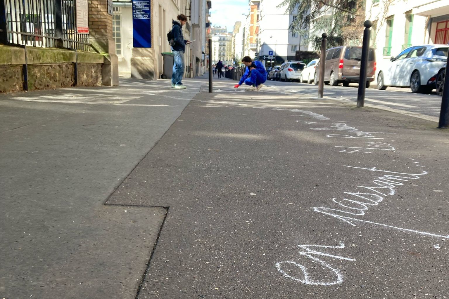 Le projet, initié en avril 2024, se prolongera jusqu’en juin 2027. Par ma pratique artistique d’écriture à la craie dans l’espace public, je veux écrire un texte, de la source à l’embouchure, qui ne se compte pas en pages, mais en kilomètres : un texte de 35 kilomètres. J’interviens ainsi depuis août 2024 dans l’espace public pour des performances d’une journée. Le texte, écrit à l’avance, est lu par les participants. Une vidéo de ce travail est en ligne, que vous pouvez consulter ici.