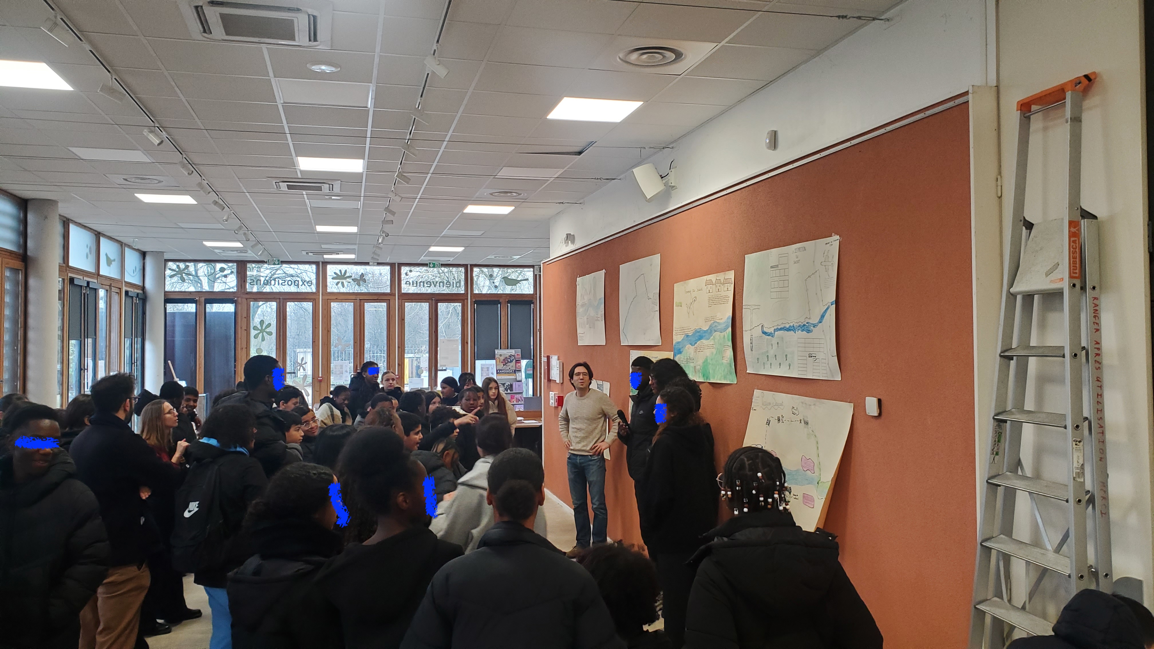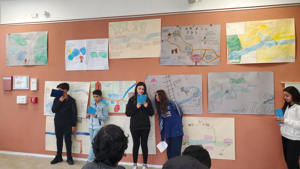 Quatre classes ont été accompagnées (6ème, 5ème et deux 2nde) à Aulnay-sous-Bois et au Blanc-Mesnil. Chaque classe a suivi un parcours dessiné sur mesure pour découvrir différents lieux des rivières et personnes disposant d’une mémoire ou d’une expertise sur les rivières, dans le but de réaliser une exposition autour des savoirs acquis, sensibles et scientifiques, par les élèves.